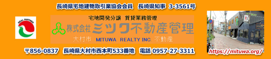 宅地建物取引業許可 長崎県知事(4)-3561号 〒856-0817 長崎県大村市西本町533番地 代表取締役 渡瀬正剛 TEL 0957-27-3311 |